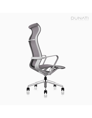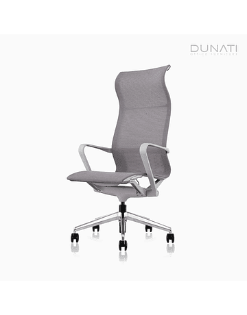 Silla de escritorio ejecutiva alta con estructura gris, cuenta con malla gris y base de aluminio, la curva del diseño del respaldo de Eros siempre se pega a la espalda humana mientras se inclina, gira o cualquier otra escena. La estructura de enclavamiento del mecanismo de Eros es una interpretación perfecta de la dinámica, brindándole una experiencia de trabajo más cómoda.